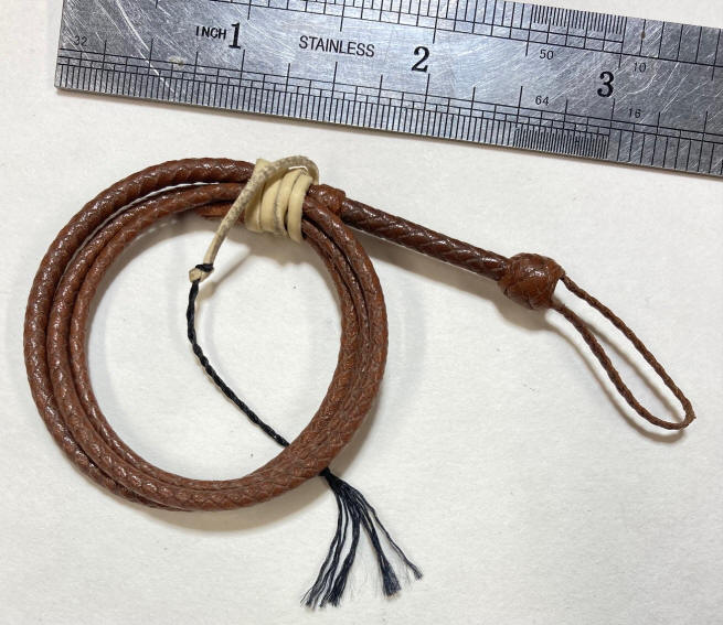 1:6 scale bullwhip are based on a 10' Raiders whip. Made from kangaroo,